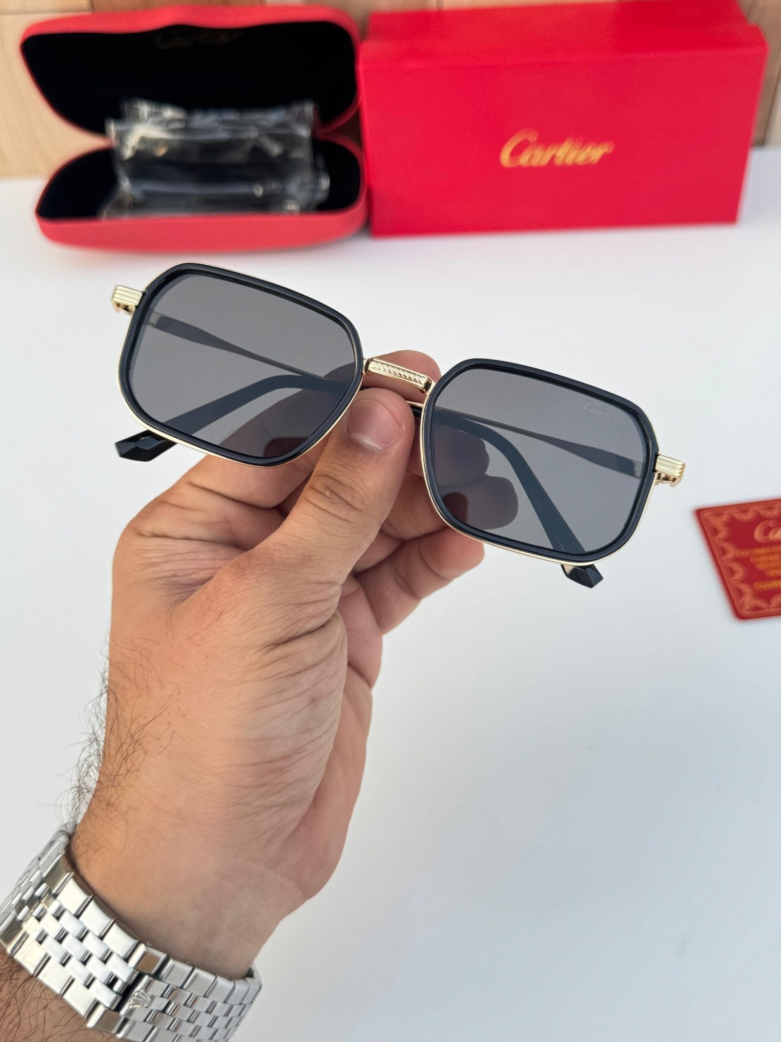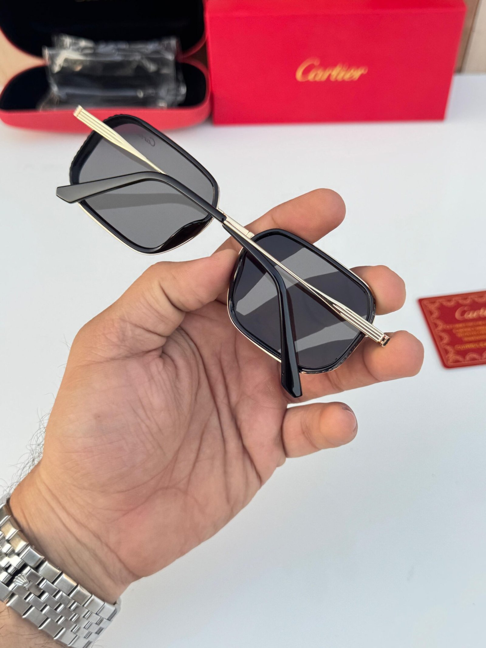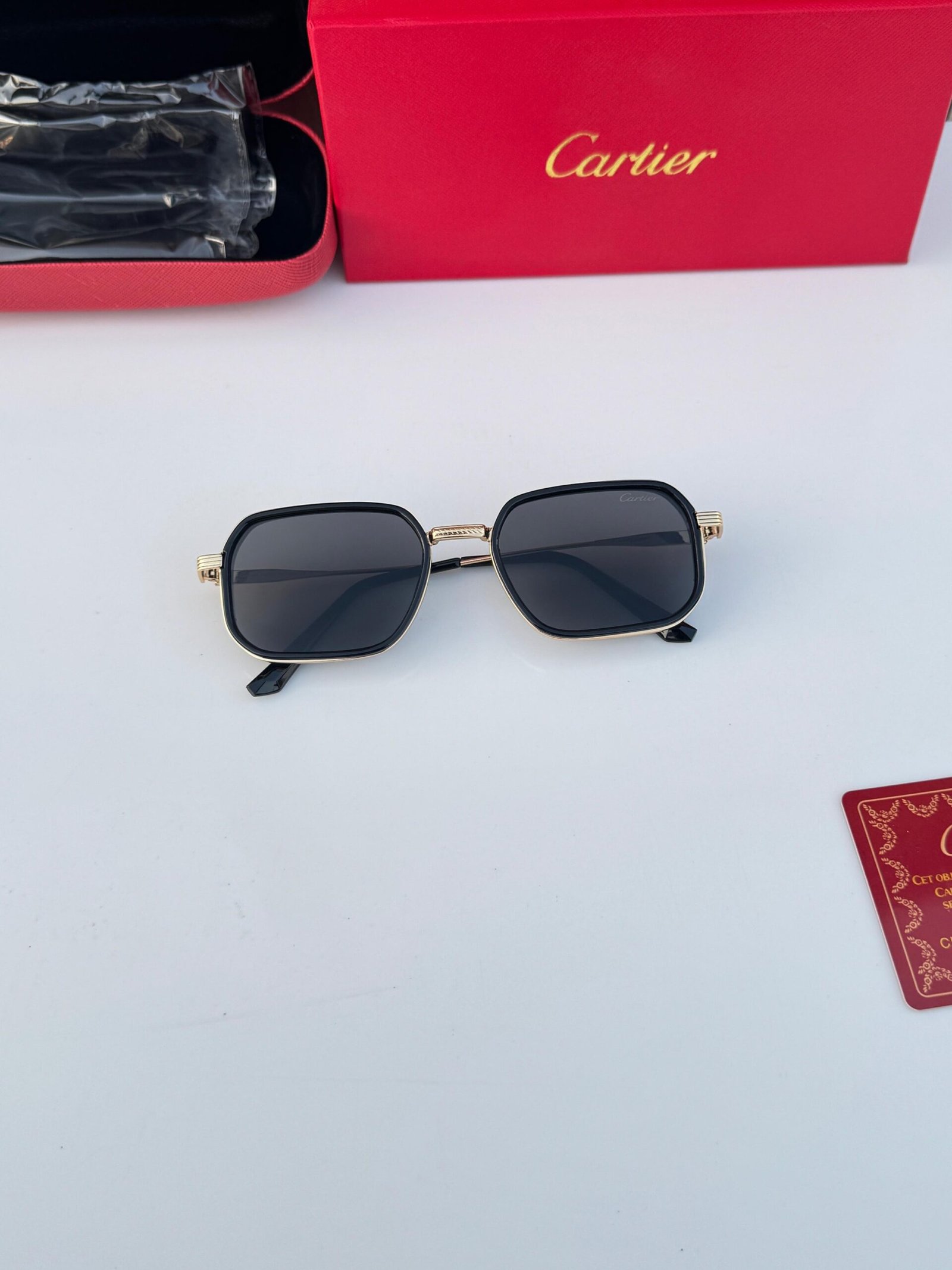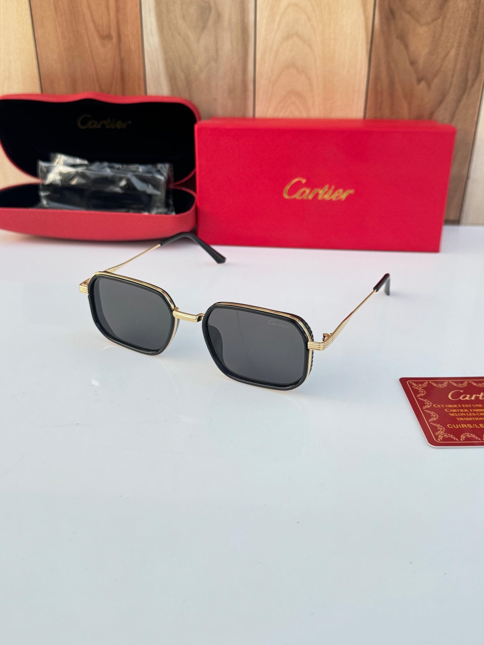 Cartier Black Gold Rectangular Sunglasses – Luxury Designer Eyewear
