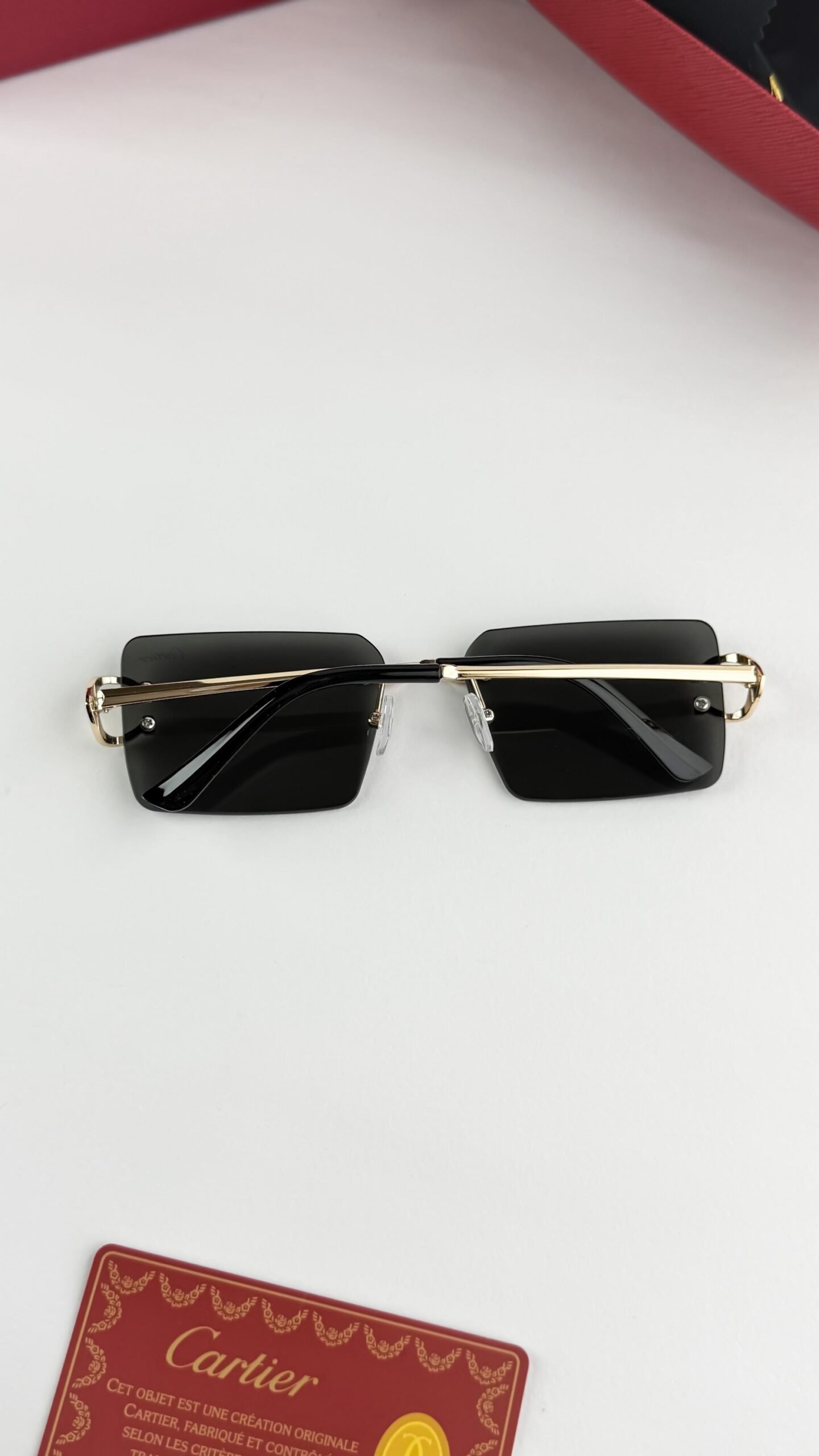 Crafted using premium materials, Cartier sunglasses feature precision detailing, signature accents, and full UV-protection lenses for both style and functionality. The gold finish adds warmth and prestige, while the black lenses create a bold, modern contrast.