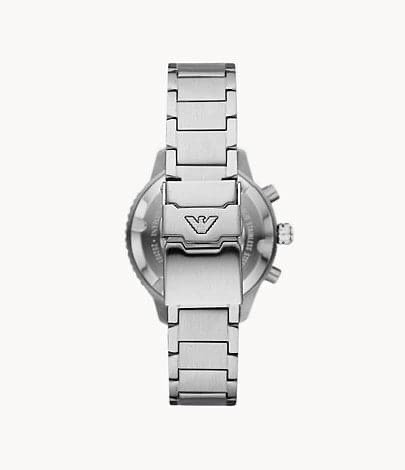The Emporio Armani AR70010 Silver Green variant combines a classic stainless steel finish with a striking green dial.