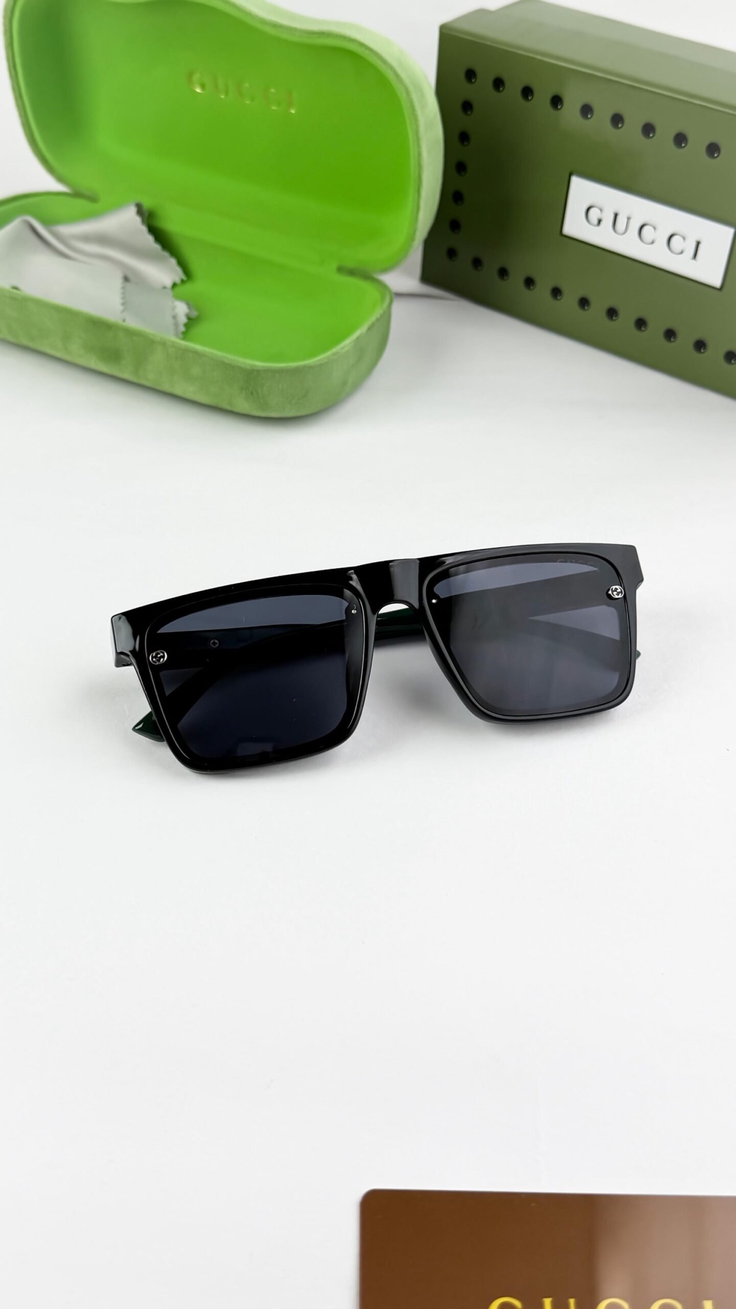 The Gucci Black Green Side 8962 sunglasses combine bold fashion styling with the distinctive luxury identity of Gucci. Designed with a sleek black frame and green-accented side detailing, this model delivers a modern statement look while maintaining everyday versatility.