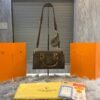 Accented with rich brown trim and a vertical center stripe featuring the iconic “G” logo hardware, the bag offers a structured silhouette that maintains its shape while providing ample space for daily essentials. The dual shoulder straps ensure comfortable all-day carry, making it perfect for work, shopping, or casual outings.