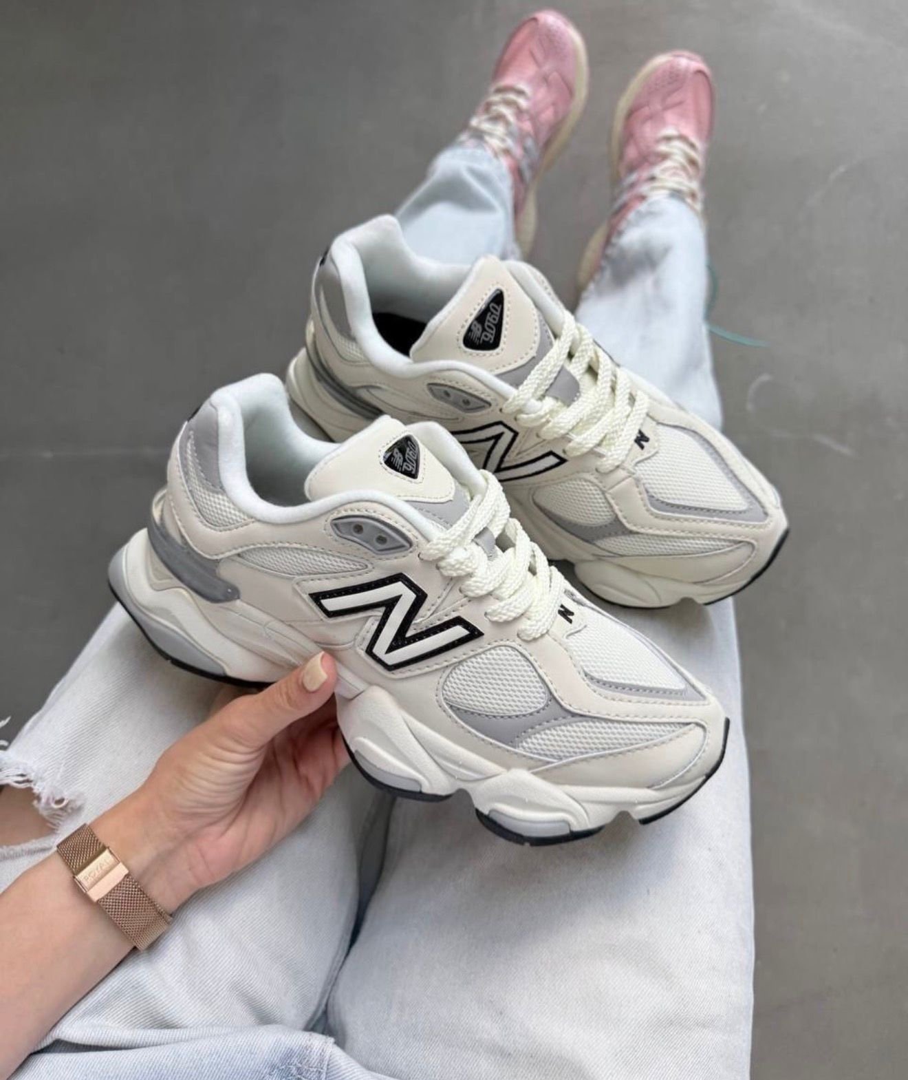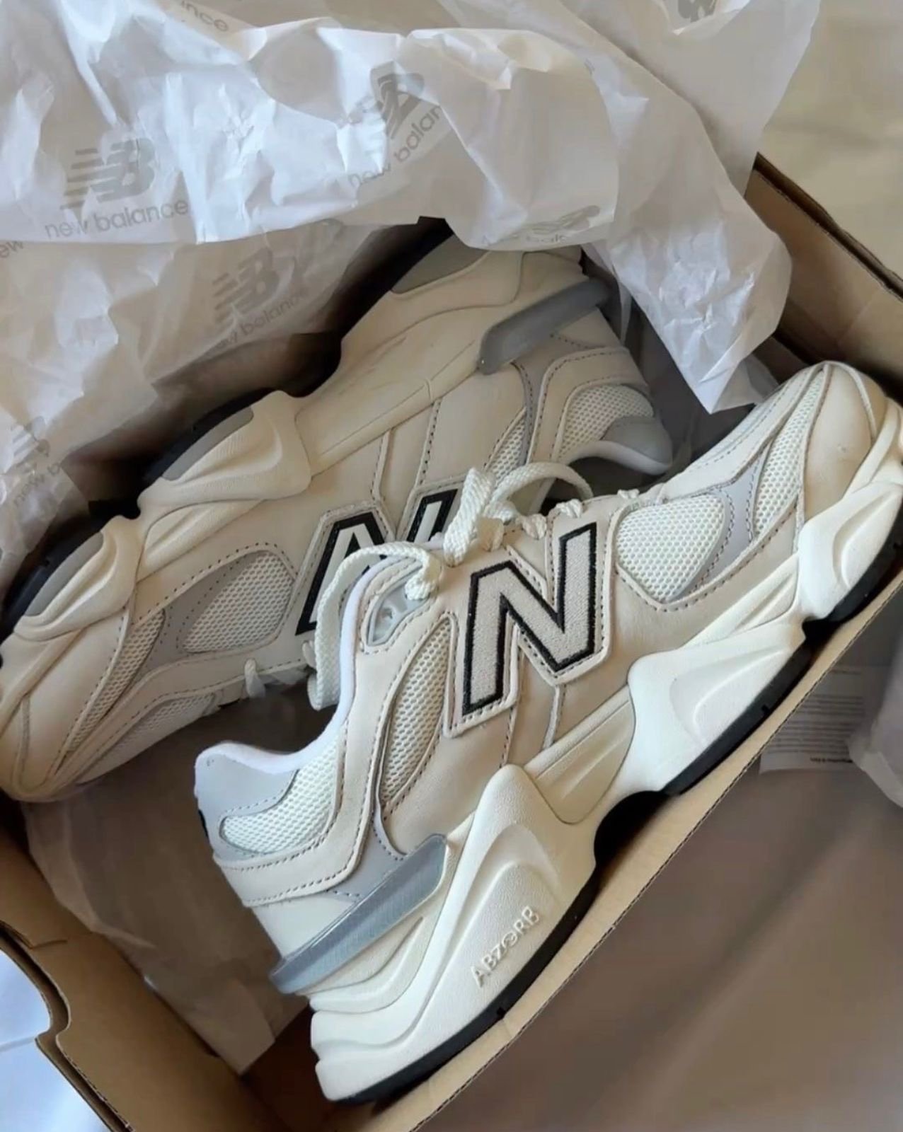 The New Balance 9060 in the Sea Salt / White Rain Cloud colorway combines retro running heritage with modern sneaker design. Created by New Balance, the 9060 series blends classic 990-inspired elements with a futuristic midsole and bold proportions.