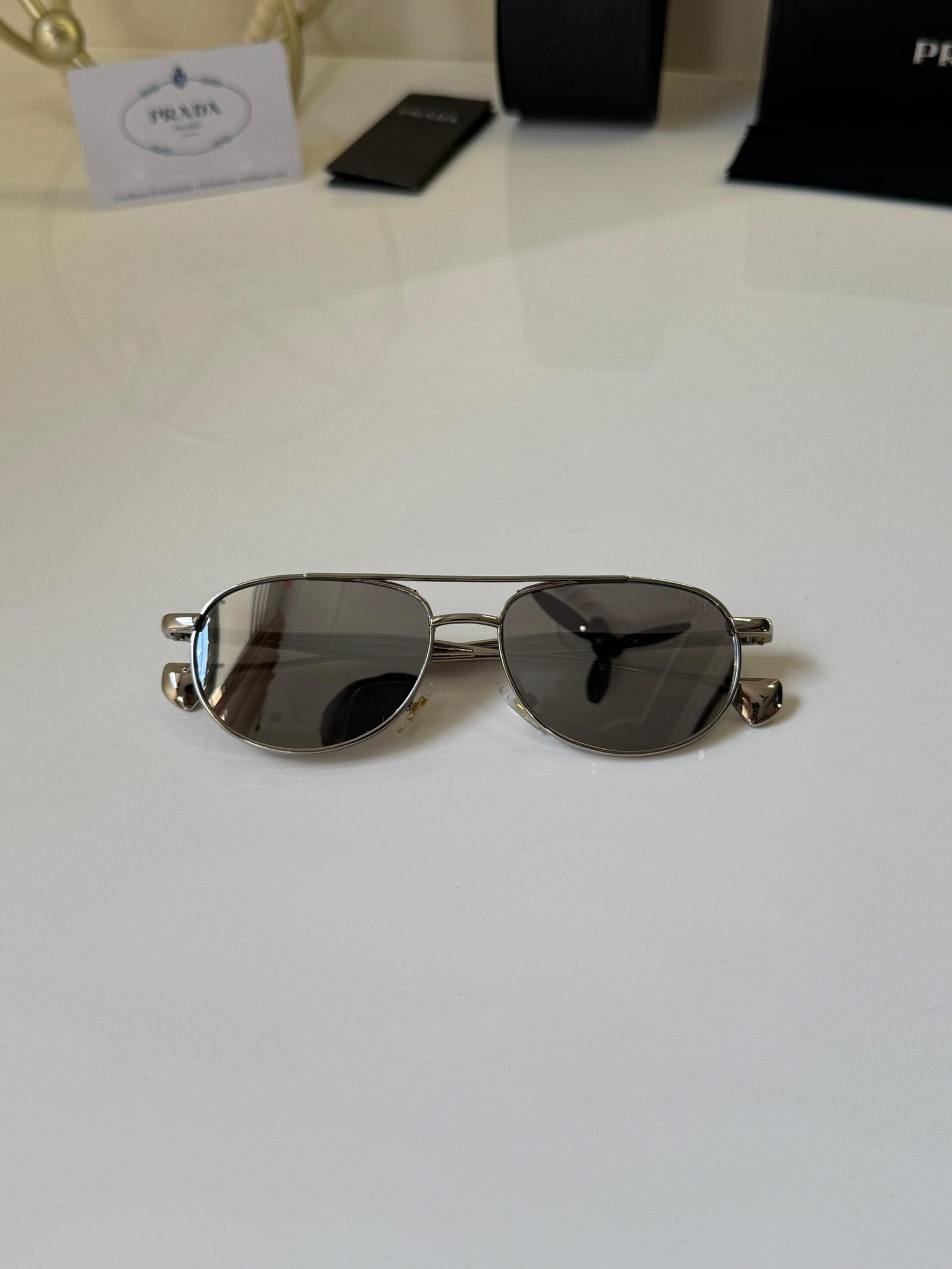 Prada 149 Silver Sunglasses combine modern minimalism with refined Italian luxury. Featuring a sleek silver metal frame paired with stylish tinted lenses, this design delivers a clean and sophisticated look that complements any outfit.