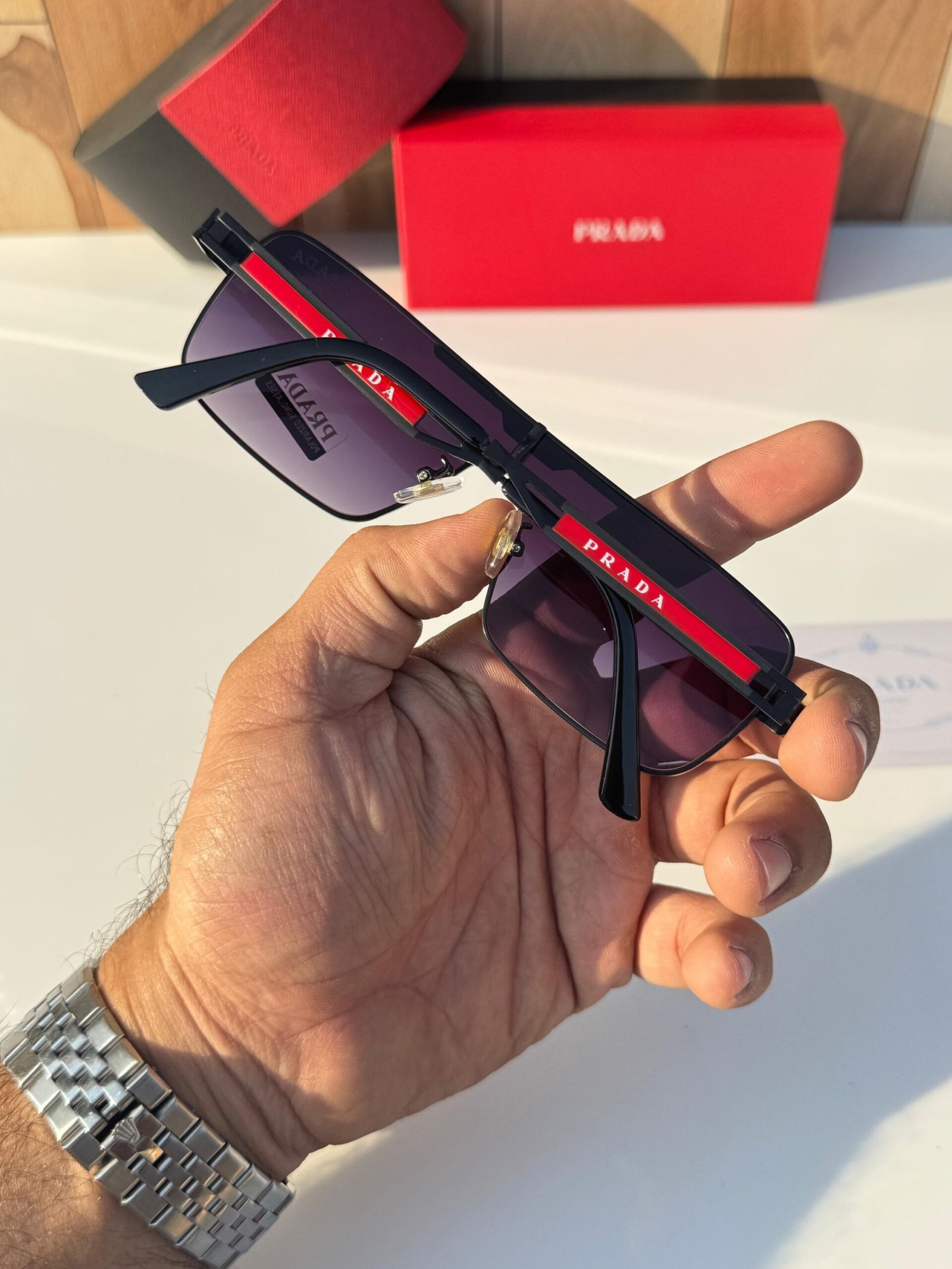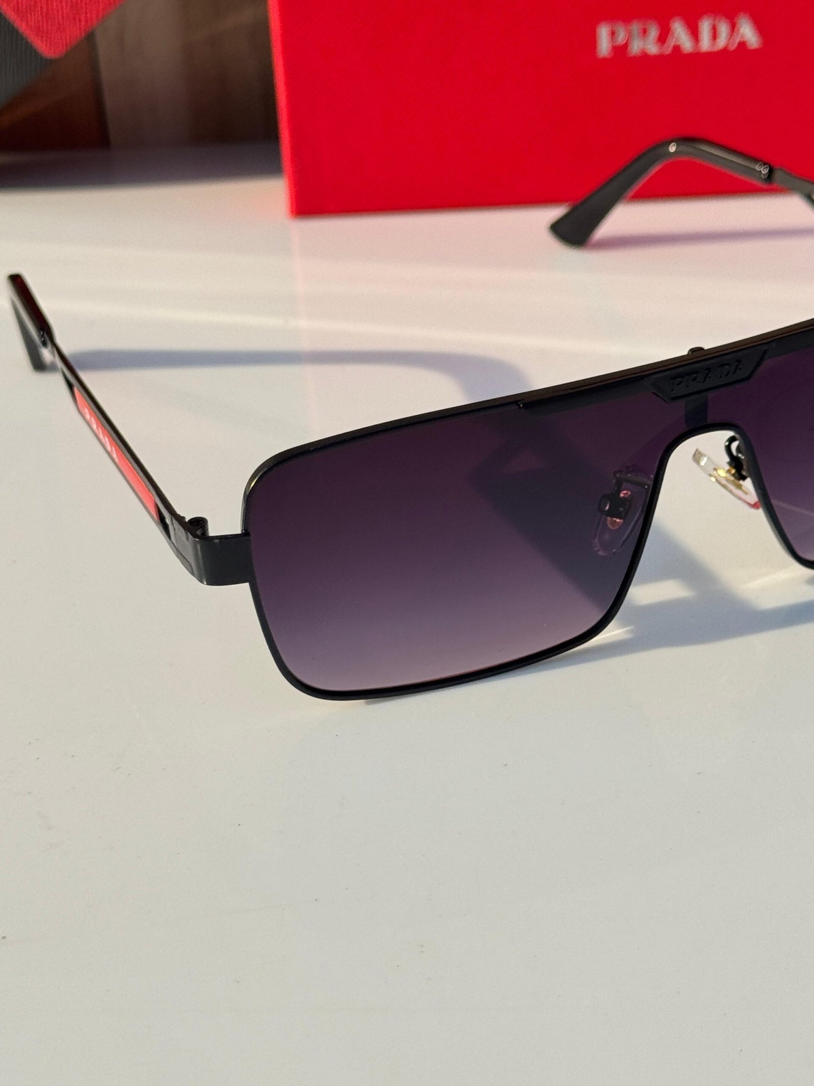 Signature Prada branding and clean architectural lines highlight the brand’s luxury heritage and contemporary design language.